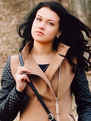 Belarus Russian woman with grey eyes, dark hair.